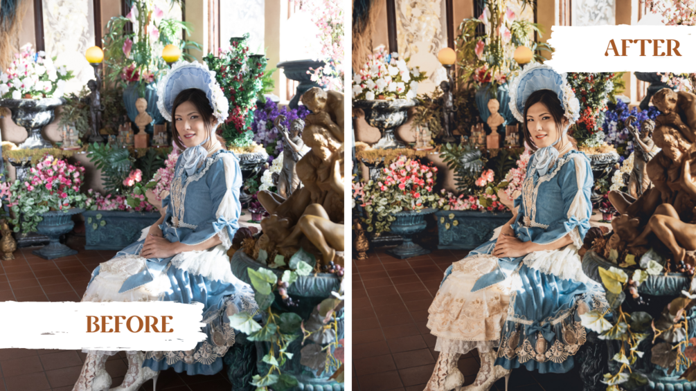 Please note that these presets offer a look in one click, but adjusting for lighting and skin tone might be necessary depending on the base photo that you are using to start with. I aim to have these presets be a starting point for you to spring from, so that you can add your own style and flare along the way to have a finalized image that is entirely your own!
